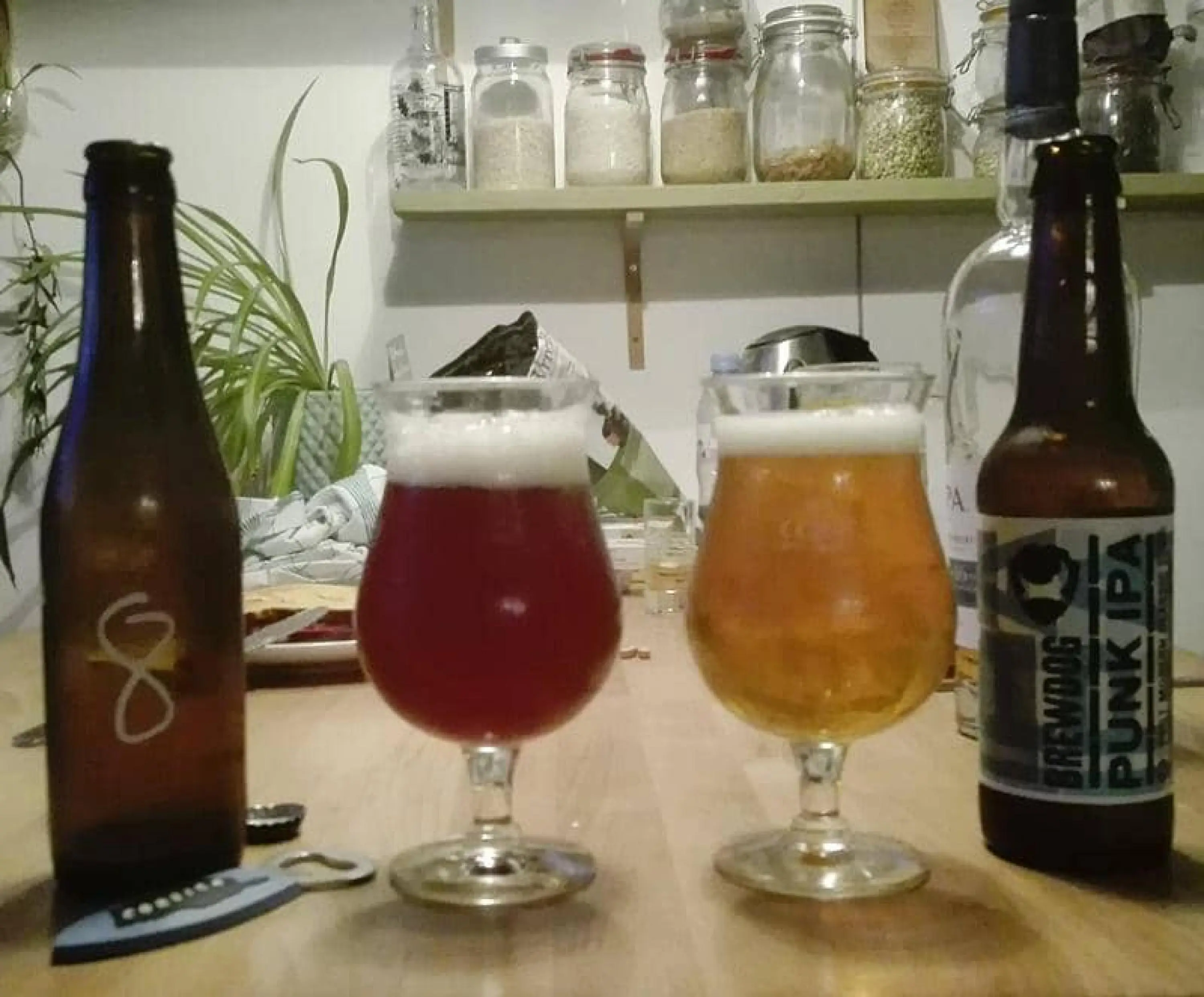 À cette époque, Arthur habitait dans un vaste appartement en colocation dans le centre-ville. C’était le lieu idéal pour commencer nos expériences, car il y avait suffisamment d’espace et de matériel de cuisine, un frigo dédié, mais aussi de copains testeurs ! Au début évidemment, on a fait pas mal d’erreurs de débutants, mais on s’est équipé au fur et à mesure pour améliorer la qualité de nos bières. On a commencé avec une casserole et une passoire et petit à petit on a optimisé tout l’équipement. Pour les recettes, on est allé les chercher sur des sites en accès libre. On avait téléchargé un catalogue de 200 bières parmi lesquelles nous avons « cloné » des recettes comme la « Dead Pony Club » ou la « punk IPA » de Brewdog.