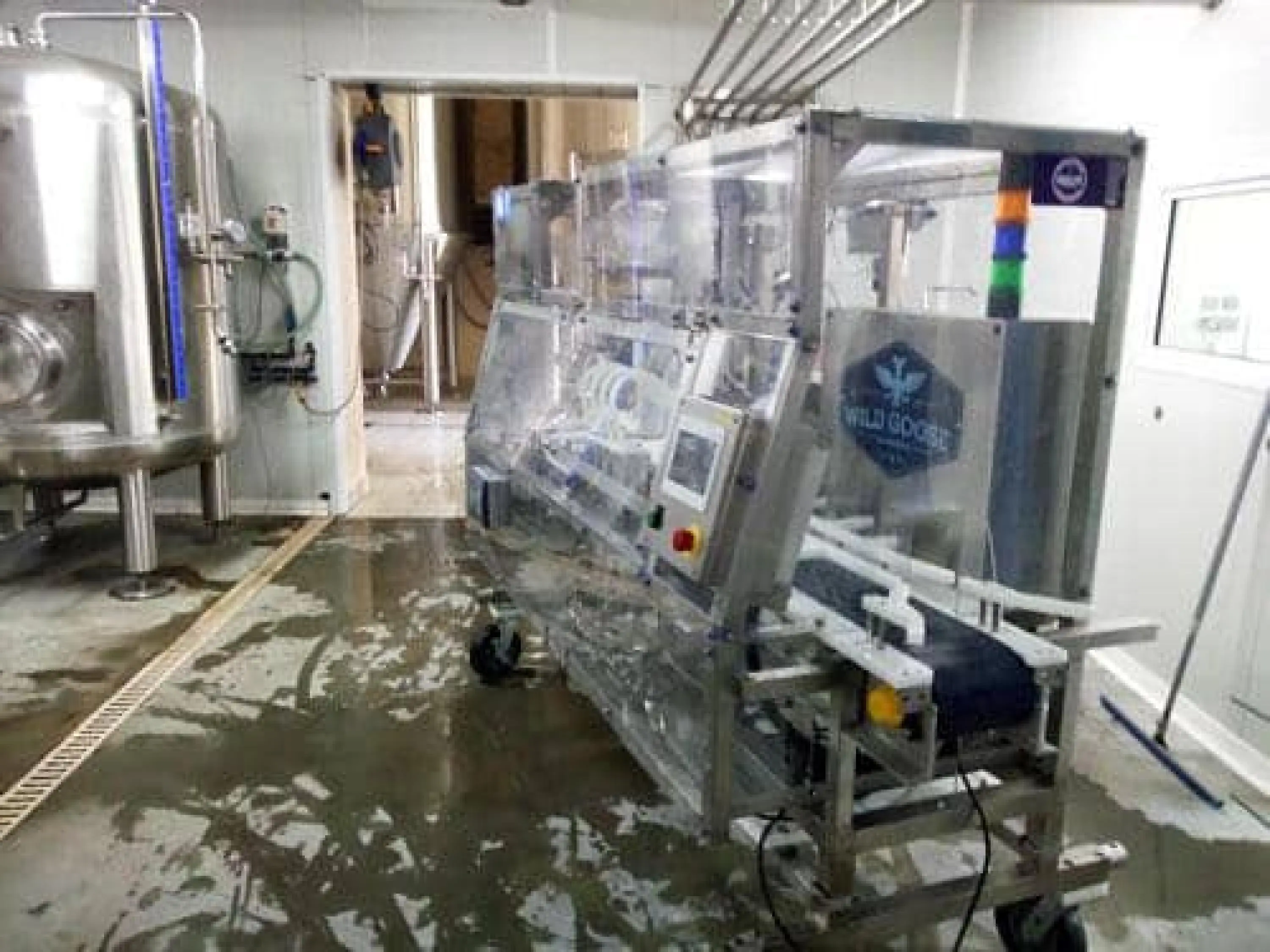 Grand Canning se déplace avec un gros utilitaire dans lequel il y’a leur encaneuse sur roulette. Ils viennent l’installer grâce au hayon, au pied des fermenteurs. Ils ont un compresseur pour souffler l’air sur toutes les canettes et activer les vérins de la machine et enfin une étiqueteuse qu’ils placent au bout de la machine avec les convoyeurs qui vont bien pour faire l’étiquetage dans la foulée.